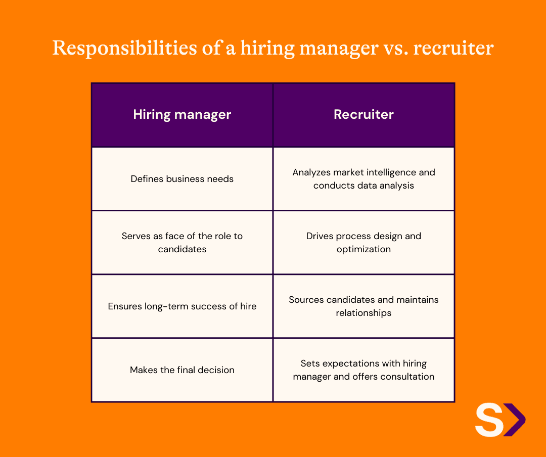 Ahead, you'll learn the differences between hiring managers and recruiters, how both roles can show up for one another, and how this partnership impacts your business outcomes.