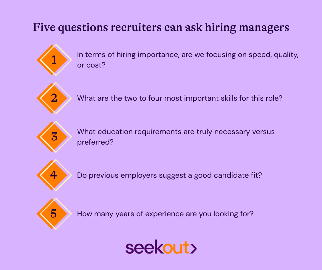 Sample questions recruiters can ask hiring managers in the kick-off meeting